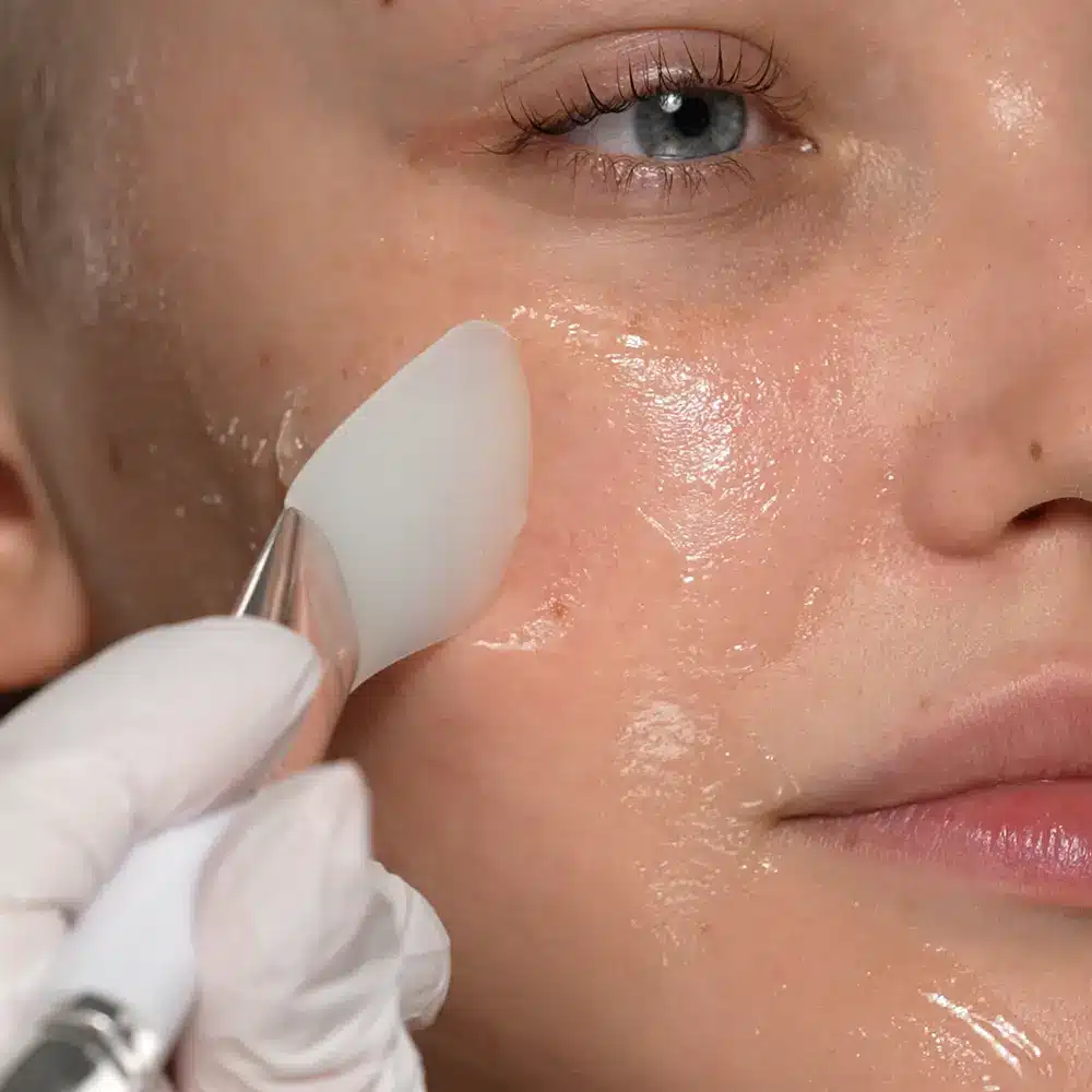 + Nutze dabei den Schabeffekt des Silikon-Applikators, um sanft die gelösten Hautschüppchen mitabzutragen.